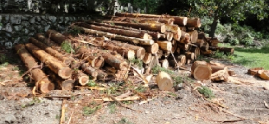 伐採の時期がきた樹木を切り落とし、森を保全します。